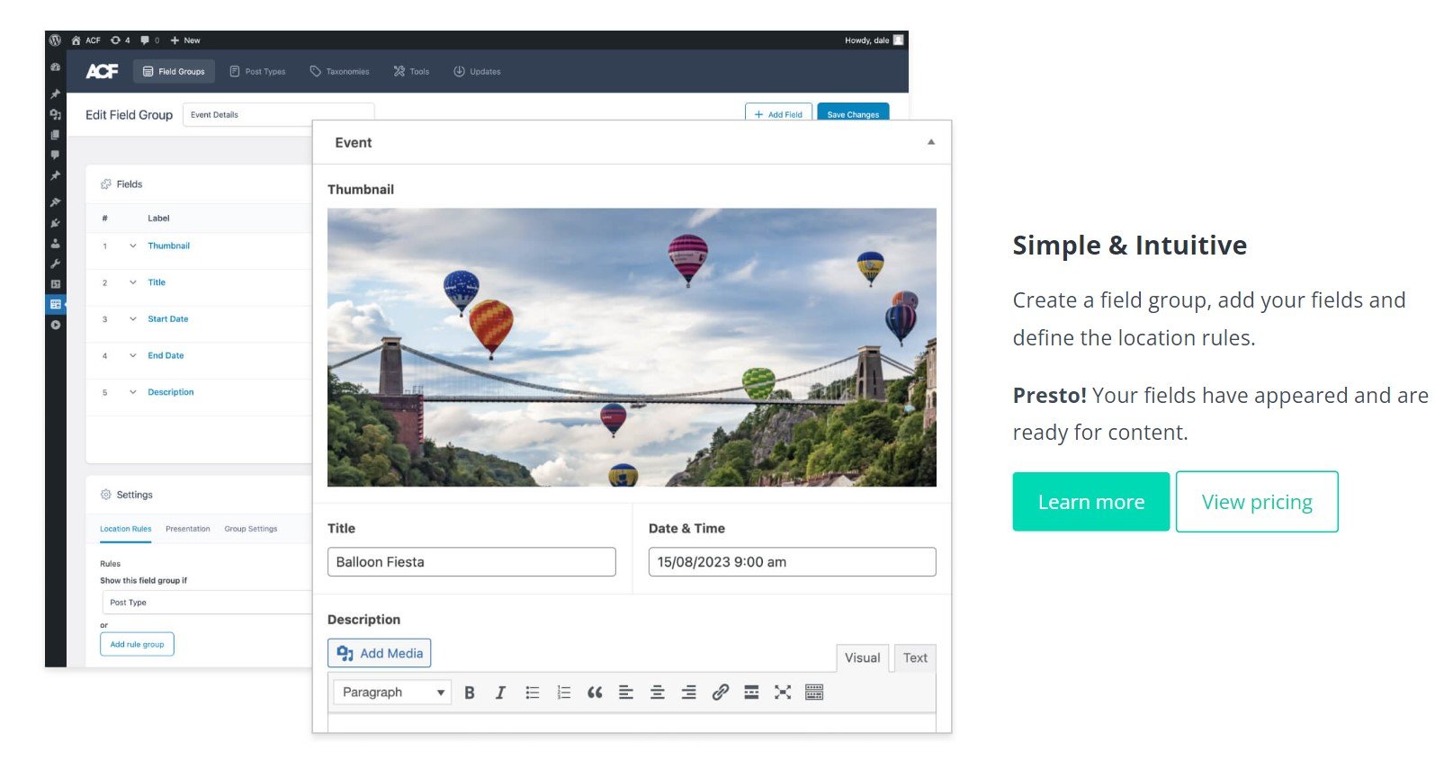 The plugin’s drag-and-drop interface is a notable feature that makes creating and modifying custom post types and fields easy. Using this interface, you can also add conditional logic, set validation rules, and arrange fields.