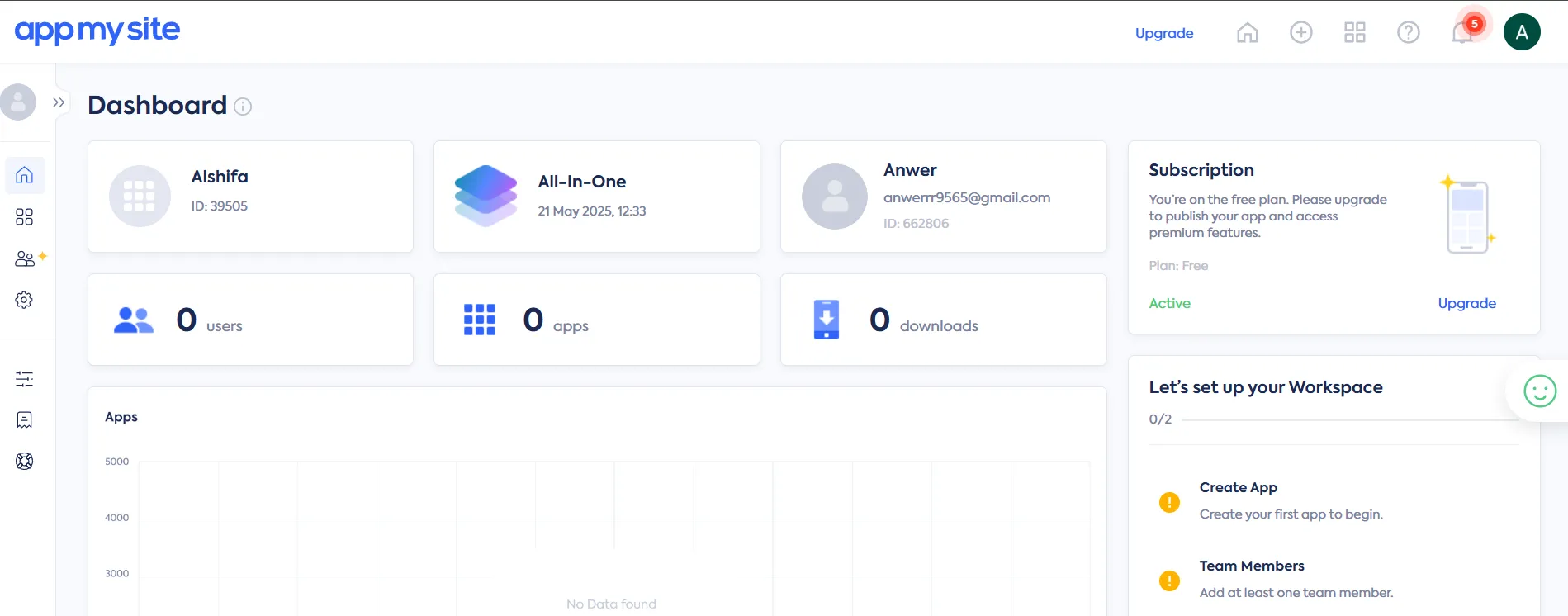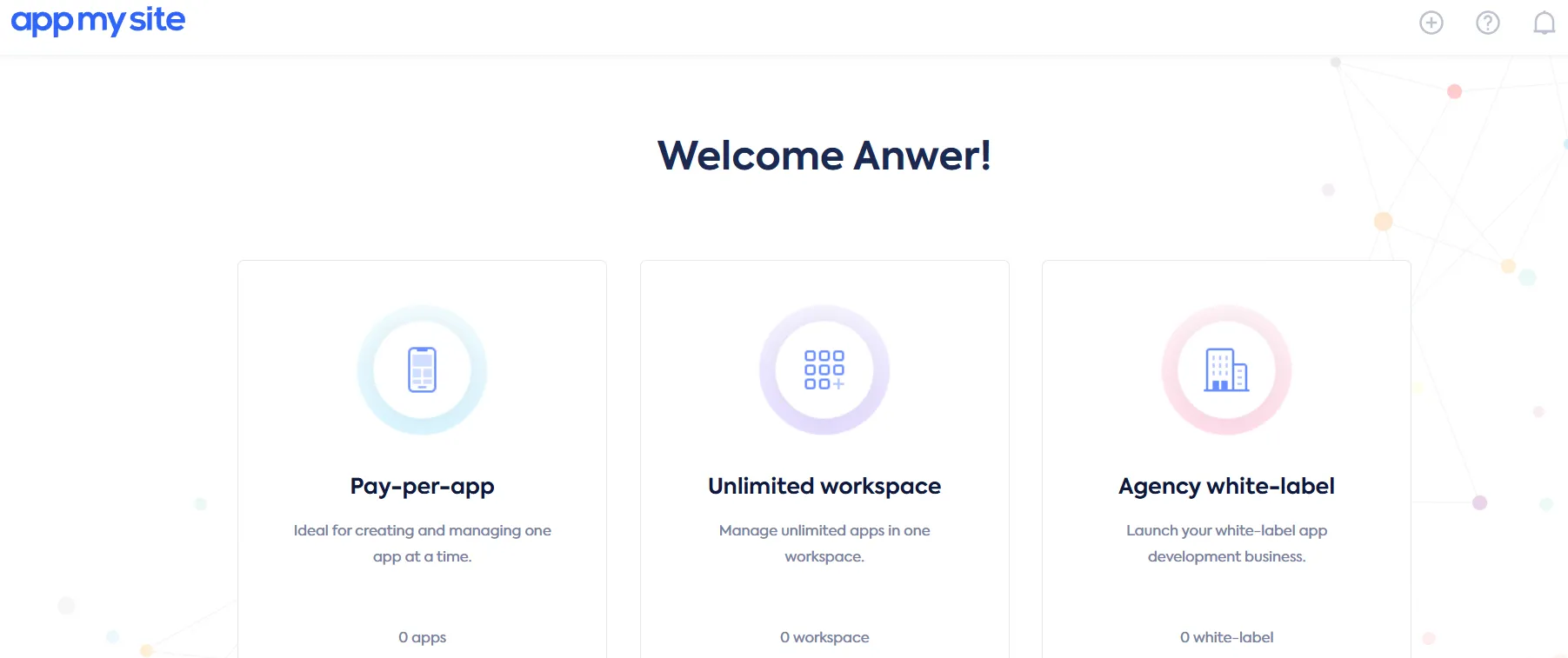 Head over to AppMySite and create an account. Once signed up, log in to access the dashboard.
