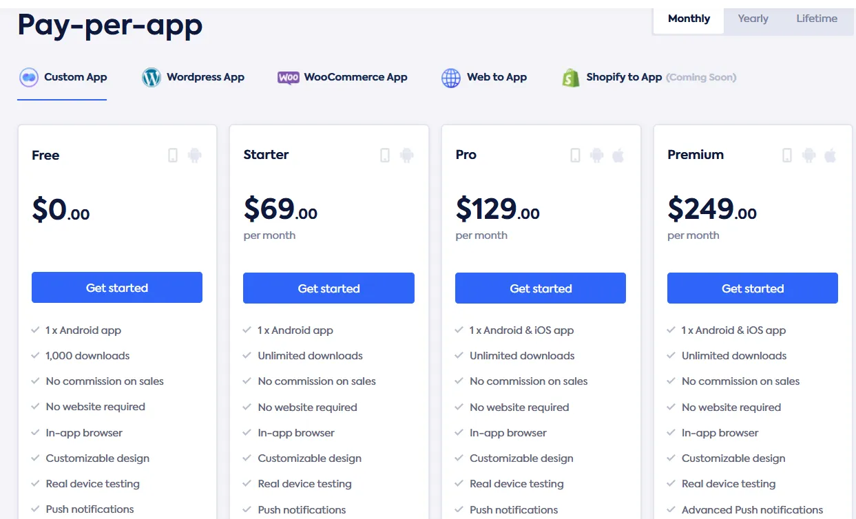 Premium$2491x Android & iOS AppUnlimitedAdvanced Push NotificationsBest pay-per-app option