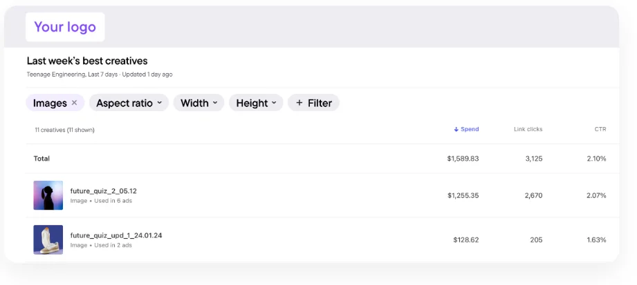 Instead of playing a guessing game, you’ll know exactly which creatives are driving clicks and conversions—so you can ditch the duds and double down on the winners.