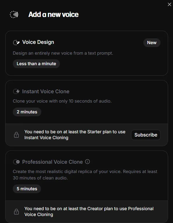 - Hobbyists & small creators → Starter plan offers affordable access to voice cloning.