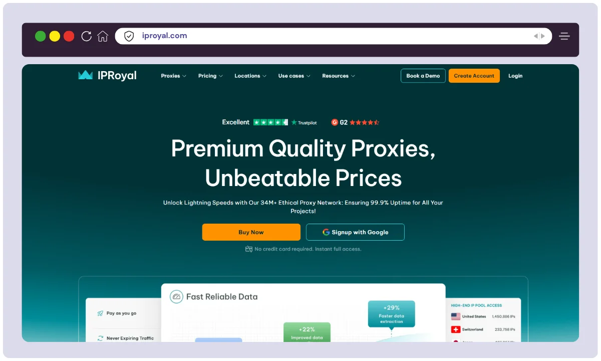 IPRoyal truly stands head and shoulders above its competitors in terms of versatility and ethical sourcing. Unlike other offerings, IPRoyal shines with its unique set of features—including real, ethically sourced residential IPs and a powerful pay-as-you-go billing system—making proxy access straightforward and affordable for users at every scale.