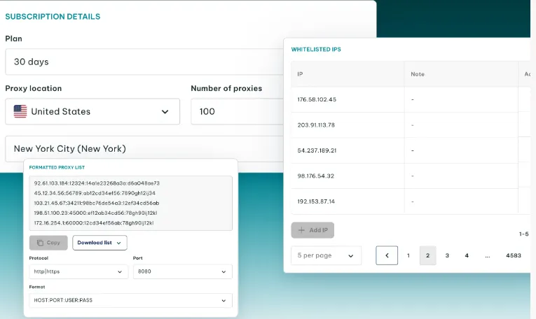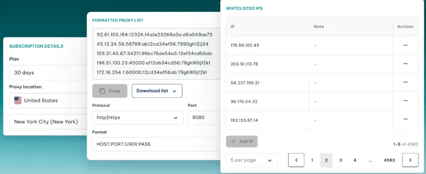 - Copy the proxy credentials (IP address, port, username, password).