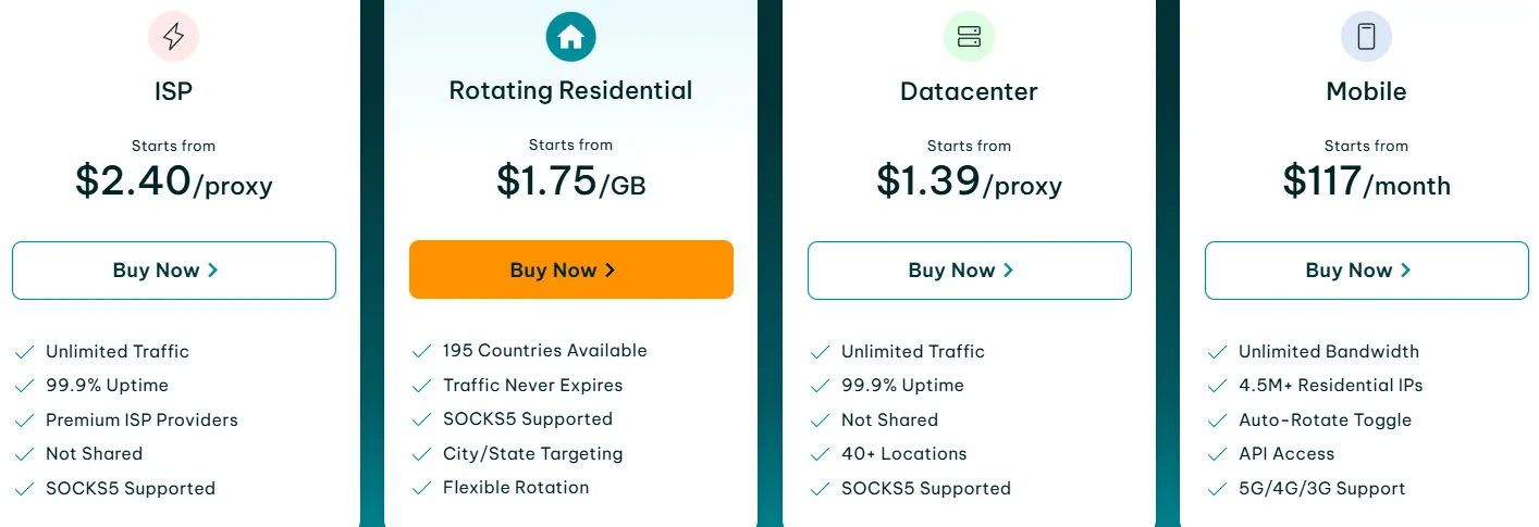 | Proxy Type | Starting Price | Key Features |