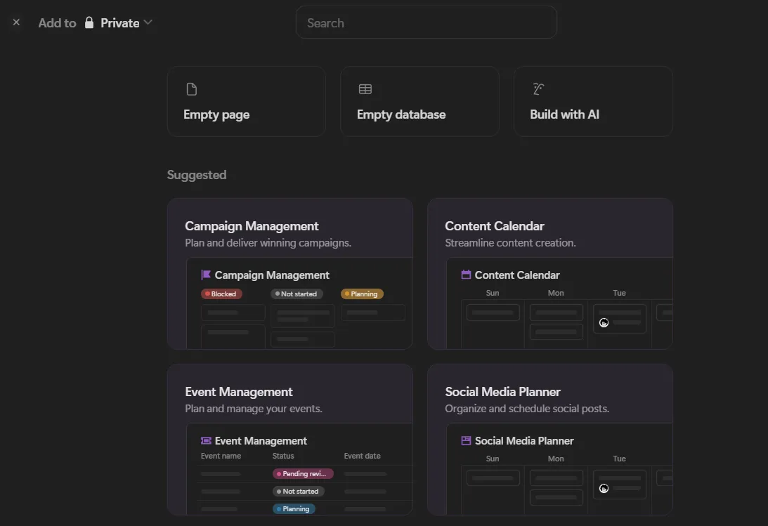 Whether you’re drafting a blog post, planning your next viral social media campaign, or brainstorming marketing ideas, Notion has your back. Save templates for repeatable workflows and embed videos, images, and files for a rich, dynamic workspace.
