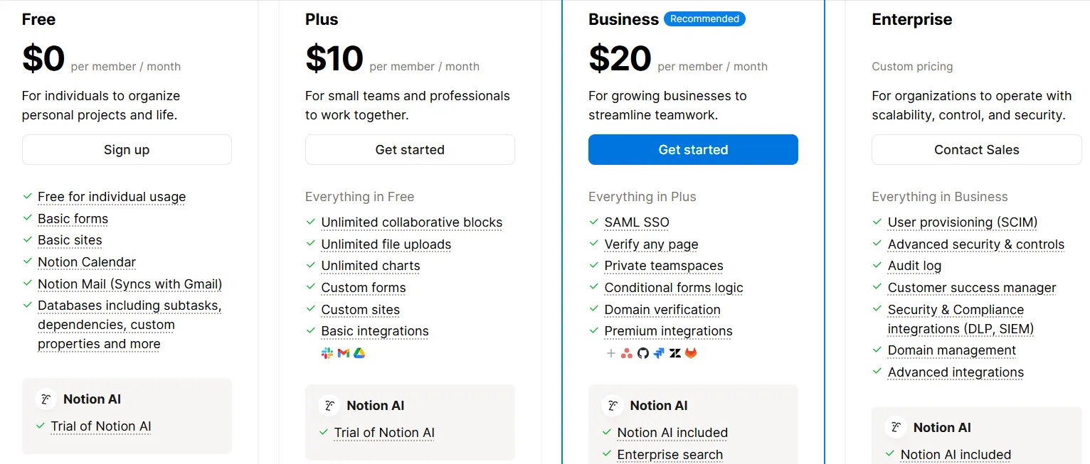 If you’re an individual or small team, the Free or Plus plan should work well. For growing teams, the Business plan offers more collaboration tools. Enterprises needing advanced security and integrations should opt for the Enterprise plan.