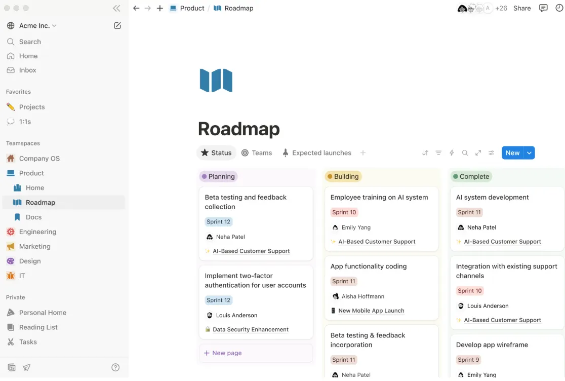 Ditch the sticky notes—Notion lets you plan projects with Kanban boards, calendars, and timelines. Assign tasks, set deadlines, and actually keep track of progress (no more “where did I save that file?” moments). Bonus: Automate workflows with Notion AI and third-party integrations.
