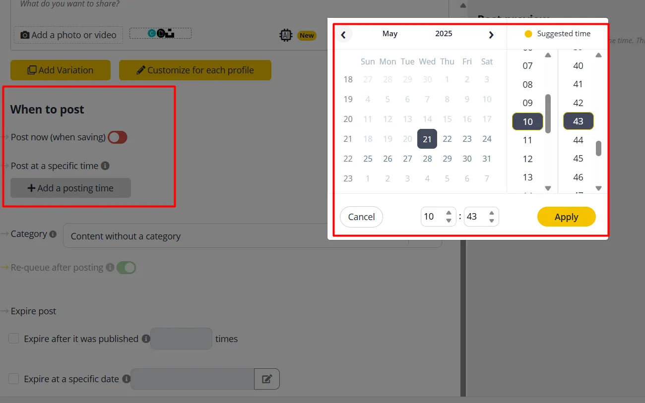 - Enable content recycling for evergreen posts.