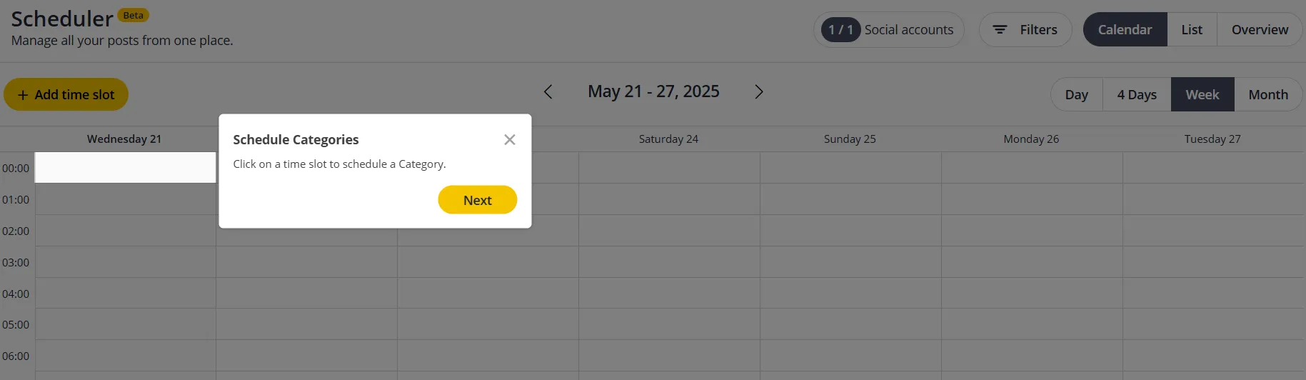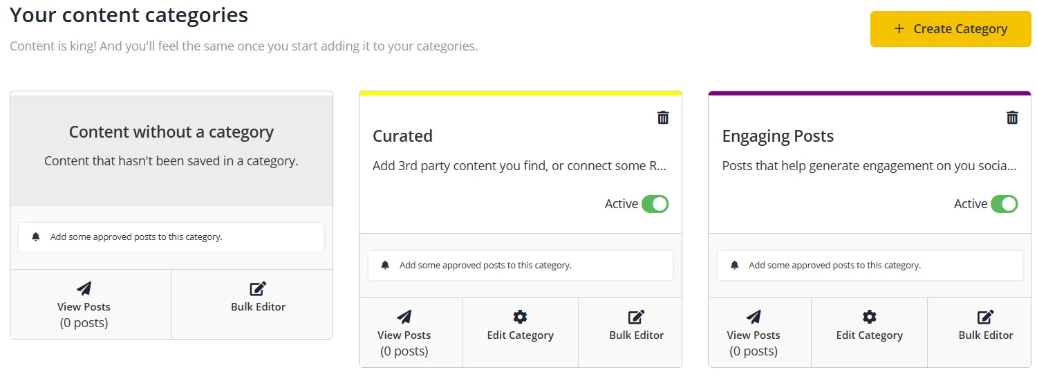 - Use the “Content Categories” feature to organize posts (e.g., promotions, evergreen content, industry news).