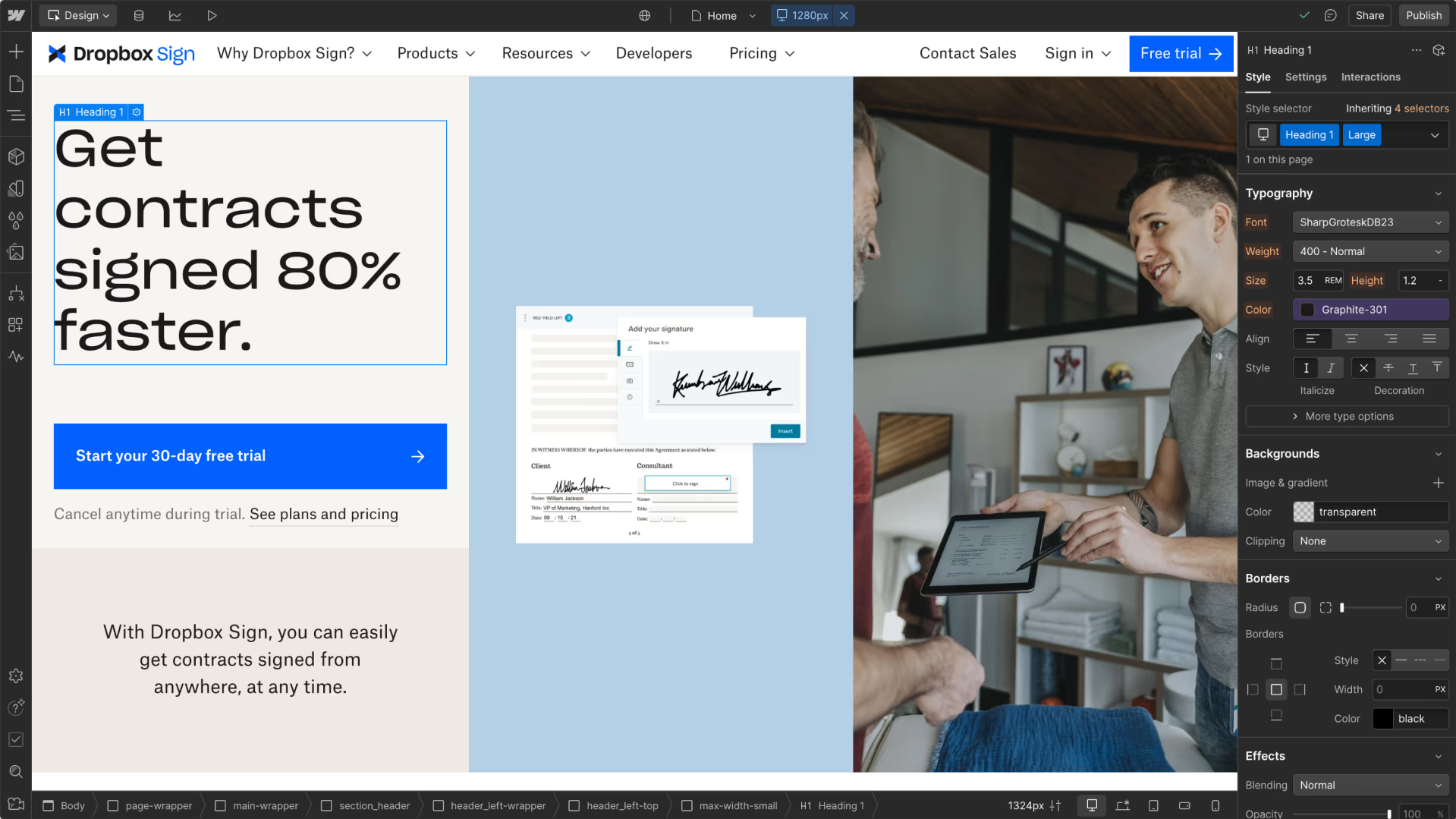 • No Need for Developers: Webflow eliminates the need for developers in most cases. You can build, design, and launch your website without coding, while still having the ability to fine-tune elements.